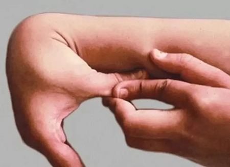比如在练习体操之前,小玲的父母带孩子去检查,发现小玲的肘关节、膝关节、髋关节、脊柱甚至手指的关节都比一般同龄孩子更松弛。比如说下面的这个动作,小玲很轻松地就可以做到。